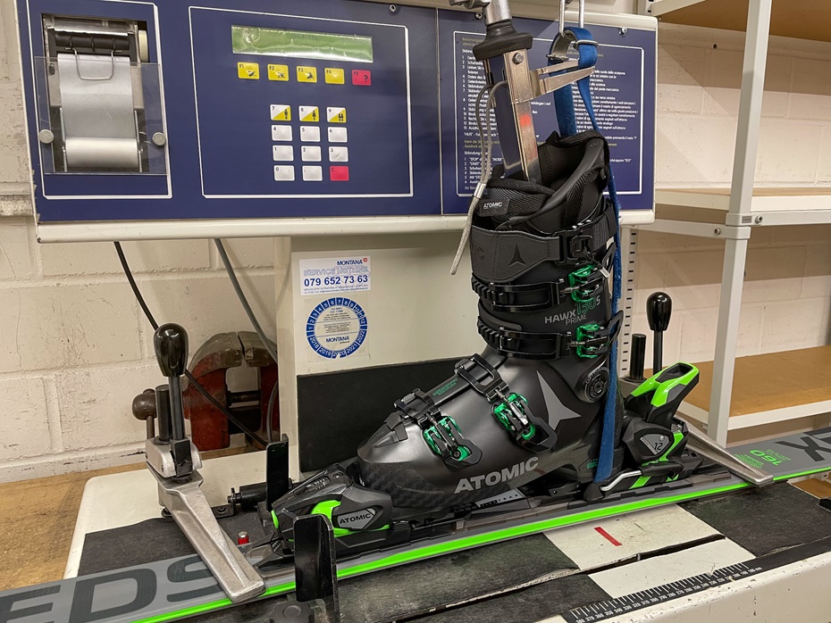 Dein Ski wird mit unserer BFU-Bindungseinstellmaschine korrekt eingestellt. Die Maschine wird jedes Jahr geprüft und vom Bundesamt für Unfallverhütung zertifiziert.